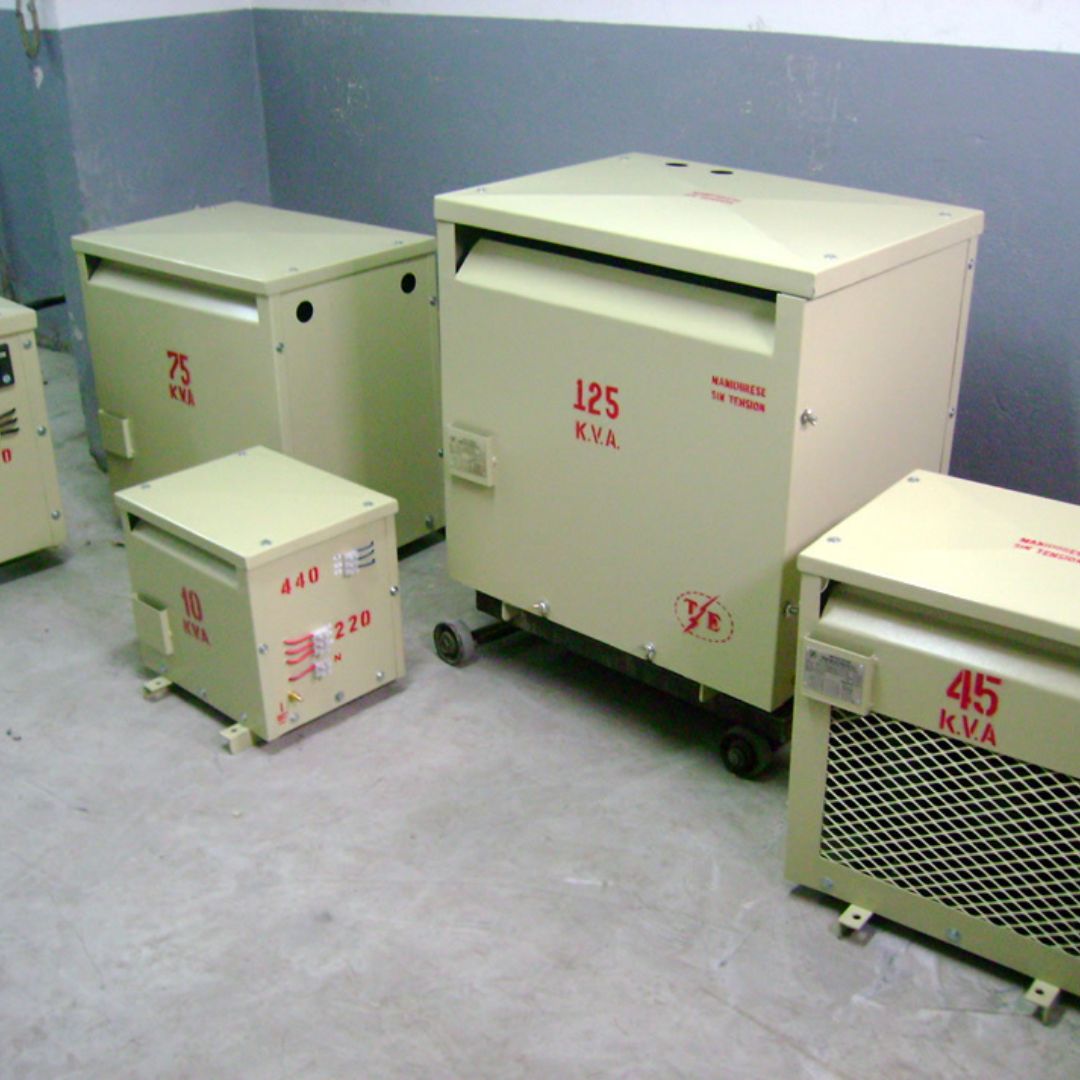 - Transformadores trifásicos desde 90 VA hasta 400 KVA, voltajes según las necesidades del cliente.